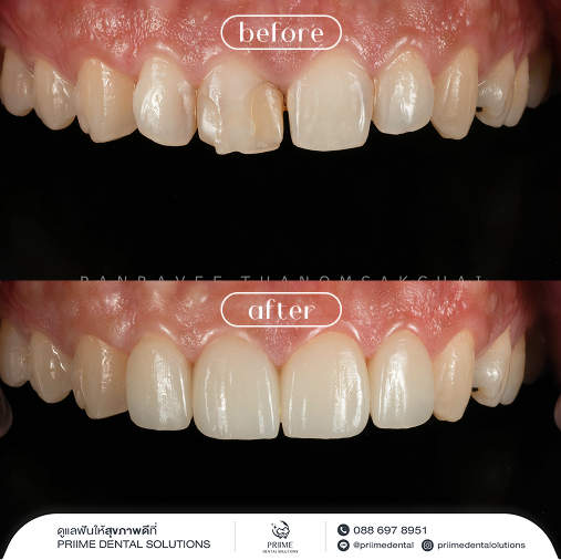 หลังจากศึกษามา พบว่าเซรามิกวีเนียร์ให้ความเงางาม ดูสวยและเป็นธรรมชาติมากกว่า จึงตัดสินใจเข้ามาปรึกษาคุณหมอ พร้อมรีเควสว่าอยากได้ลุคที่ดูธรรมชาติ คุณหมอก็ช่วยออกแบบรอยยิ้มให้ใหม่อย่างละเอียด ได้ผลลัพธ์ที่ดูสวยกลมกลืนและตรงใจมาก ๆ