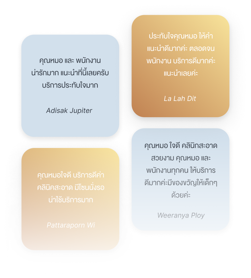 ขอบคุณทุกความไว้วางใจจากคนไข้ของเรา ทุกรีวิวคือแรงบันดาลใจให้ Priime Dental Solutions มุ่งมั่นให้บริการที่ดีที่สุด ใส่ใจทุกขั้นตอน เพื่อผลลัพธ์ที่สวยงามและสุขภาพฟันที่ดีของคุณ